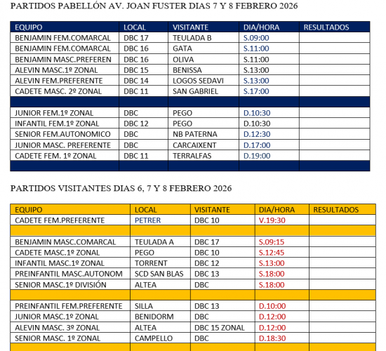 Partidos de Baloncesto del 6 AL 8 de Febrero del 2026.
