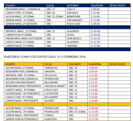 Partidos de baloncesto programados para los días 30, 31 de Enero y 1 de Febrero.