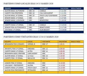 Partidos de baloncesto programados del 12 al 15 de Marzo del 2026.