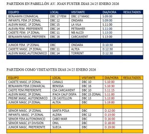 BENISSA 65-24 DBC 17 BENJAMÍ FEMENÍ COMARCAL Malgrat la superioritat de l’equip local, les xiques de Vera Navarro i Patricia Catalá van fer un partit molt positiu en què es va apreciar la millora de totes les jugadores. DBC 17 BENJAMÍ FEMENÍ COMARCAL 6-46 DBC 16 BENJAMÍ FEMENÍ Excel·lent ambient al Joan Fuster per a...